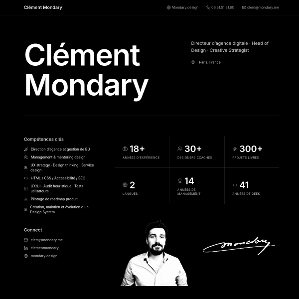 2026-02-11 | 14 | Bientôt | contact@mondary.me | Portfolio | |